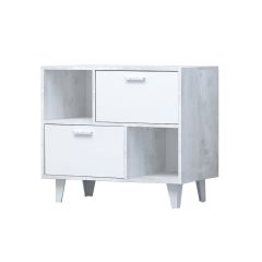Тумба Эго Т-1, 2 ящика, (на ножках) Бетон светлый/Белый глянец