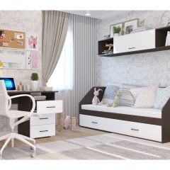 Корпус выполнен из ЛДСП Egger, кромка - ПВХ 2 мм и 0,4 мм. Фурнитура производства России, Турции, Германии. Сборка комплекса возможна в любую сторону. Максимальная нагрузка на спальное место 90 кг. Гарантия производителя: 18 мес.